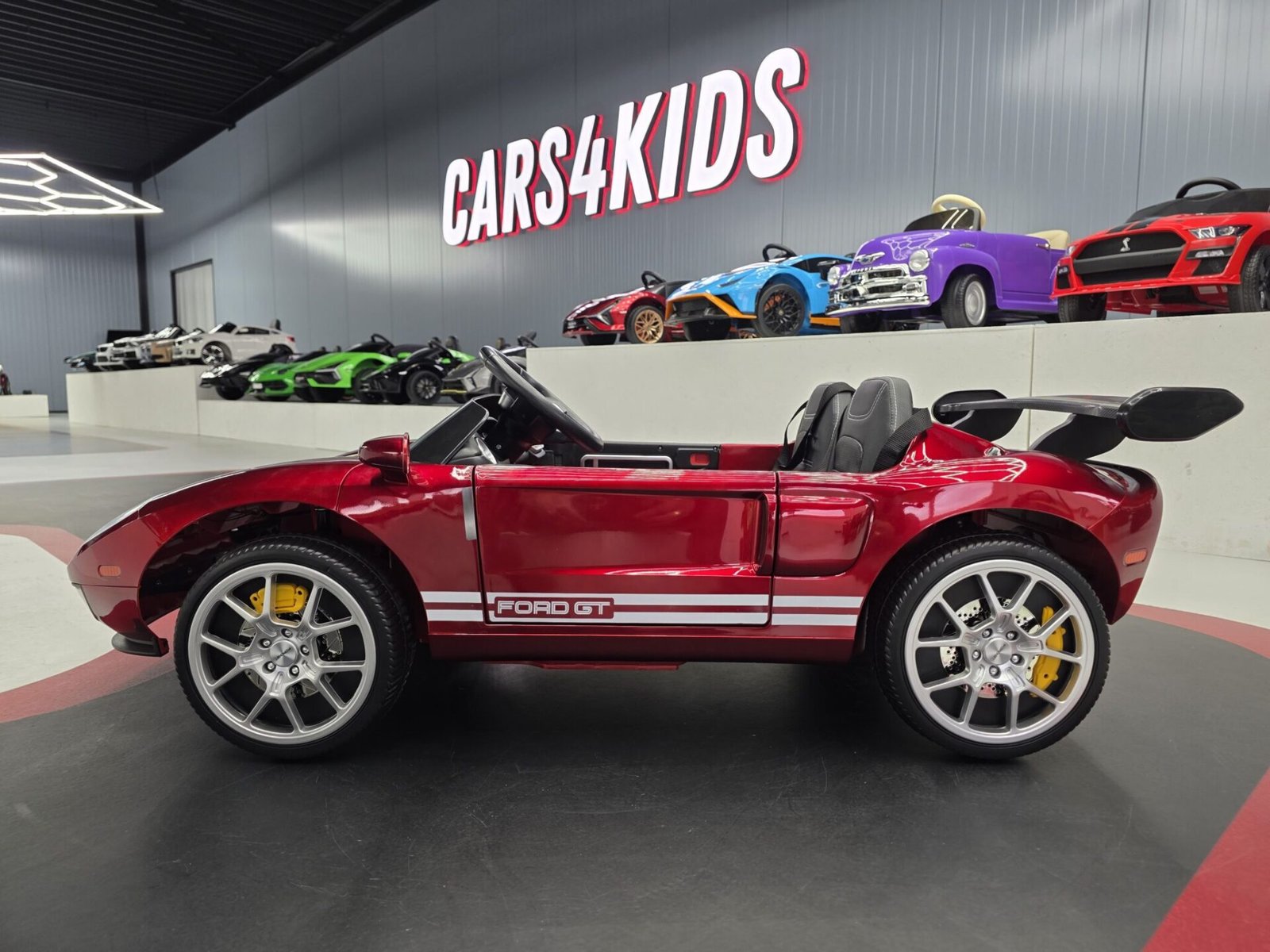 This Ford GT kids’ car is equipped with many extras, including lighting, a dashboard with USB port, a radio, and Bluetooth. It features a leather seat and a 2.4G remote control. Suitable for ages 3 and up (due to small parts).